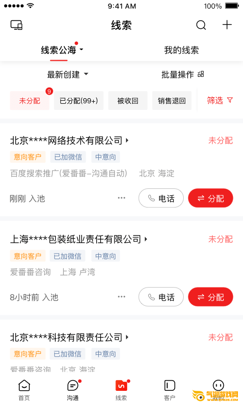 2、「线索池」联系电话脱敏显示,线索安全有保障