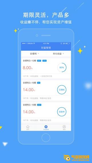 银谷在线app是一款非常正规、专业的金融理财软件。银谷财富app经过层层审查风险,旨在给用户带来最安全的金融投资服务,还有丰富的理财产品供大家选择,非常贴心又可靠!