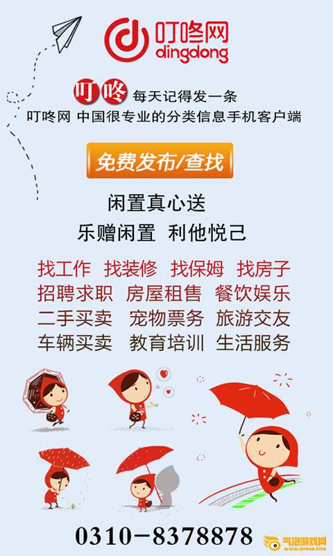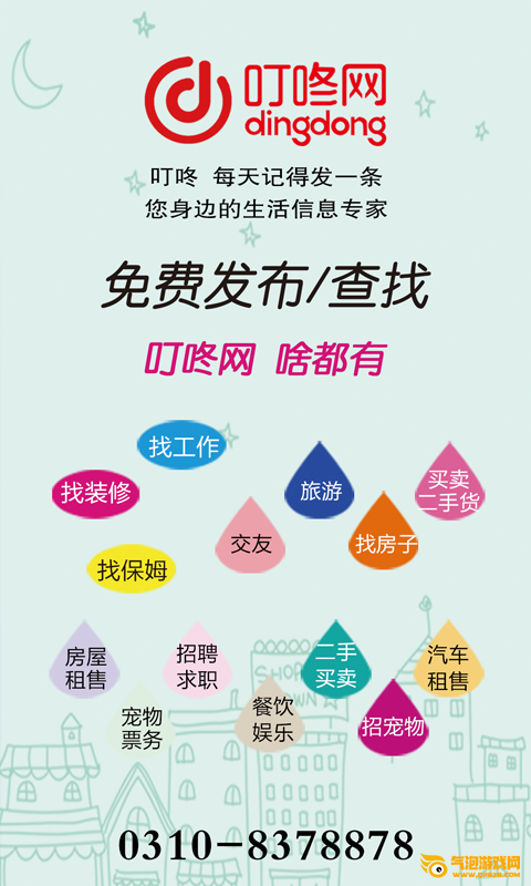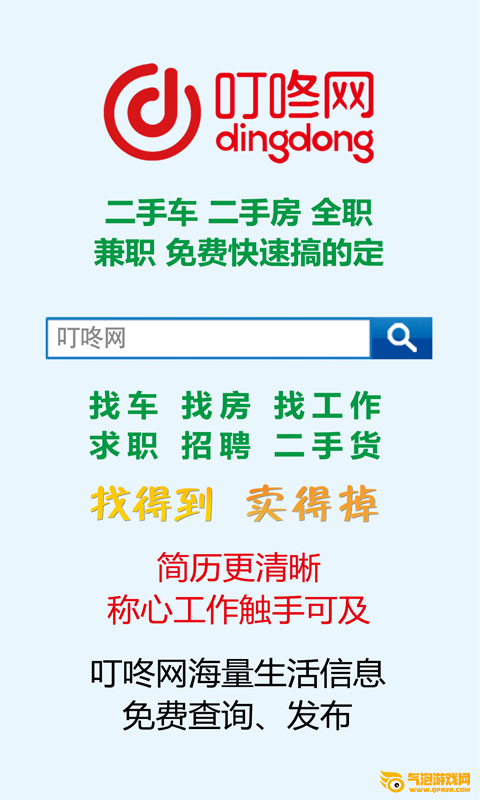 叮咚网,服务涵盖房屋租售、二手买卖、车辆买卖、招聘求职、生活服务、汽车租售、宠物票务、餐饮娱乐,同城交友、覆盖全国所有大中城市,汇聚大量个人和商家信息。