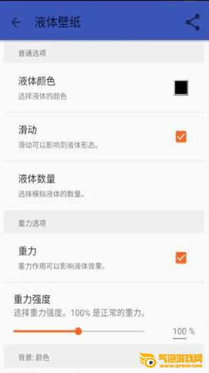 液体壁纸app是一款模拟液体流动效果的壁纸软件,手机液体壁纸app软件让你的手机屏幕看起来就像是一个装了液体的瓶子一样,开启液体壁纸app会让屏幕上的液体会随着你的手机晃动而流动。