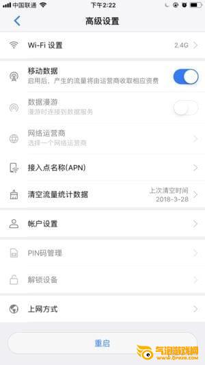 在高级设置里,我们可以对数据流量的开关进行管理,在最下方则设置了重启和关机功能。而网络诊断功能则可以帮你帮你判断目前网络的连接状况是否正常。