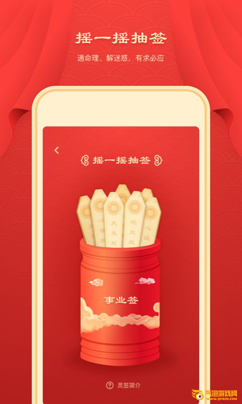 手机摇一摇,每日一签,每天占卜当天的运势,解困惑,享财运。