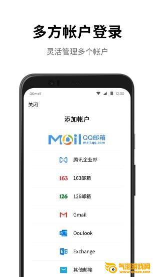 完全支持普通邮件协议,除了QQ邮箱,还可以添加各种其他邮箱