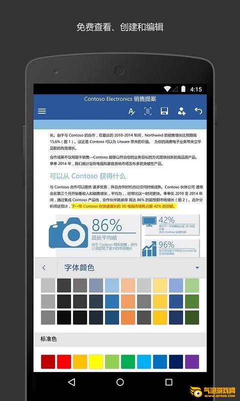 -Android Office带给你无与伦比的兼容性和布局的高保真。您的文档可以在安卓手机和平板电脑上完美呈现。