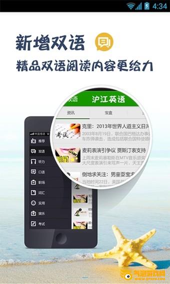 放轻松。可以从双语、听说、词汇等方面学习英语。界面清新、简洁、丰富、及时,具有文字、图片、音频、视频的多媒体阅读体验,能全面提升你的听、说、读能力。支持离线下载,不用网络也能轻松阅读学习!