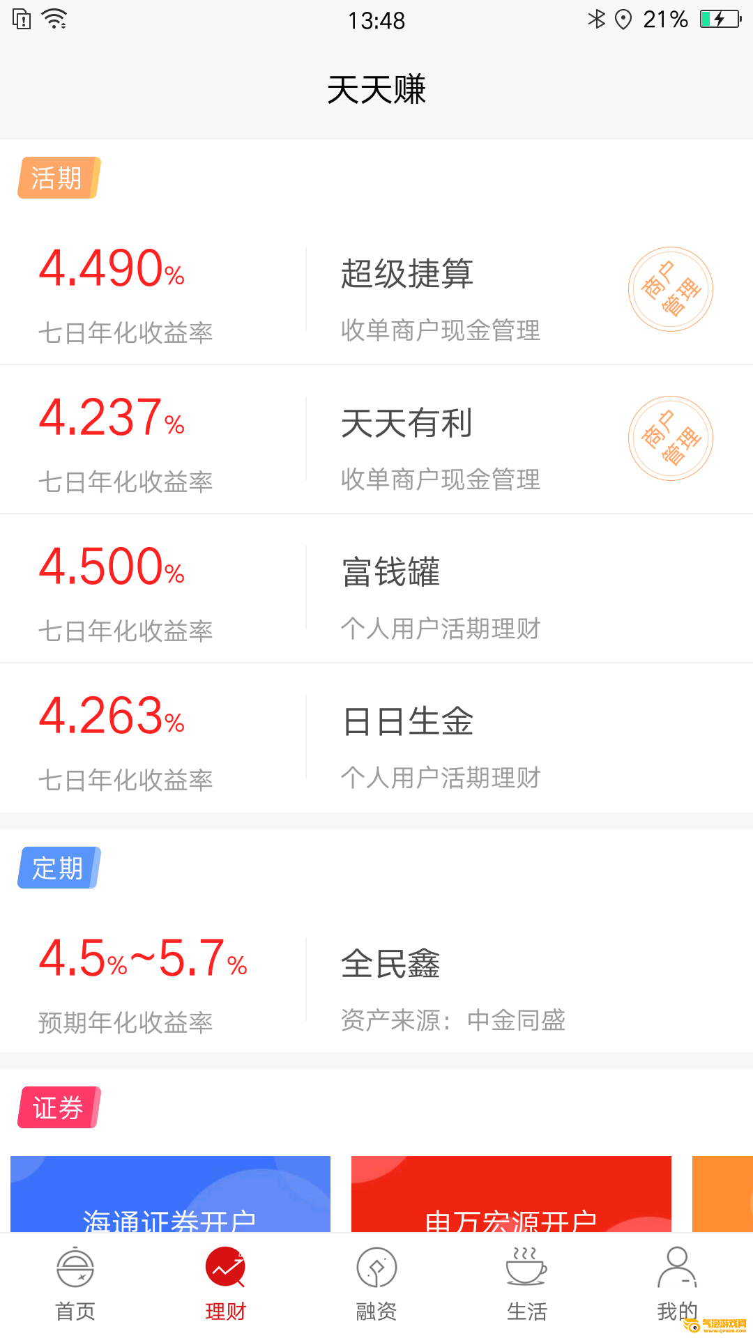 天天府app是一款金融服务客户端应用。天天府不仅满足了商家维持和增加资金价值的需求,也满足了金融投资机构向企业客户销售金融金融服务的愿望,为众多商家提供安全便捷的现金金融服务,回报高,风险低,非常安全可靠。
