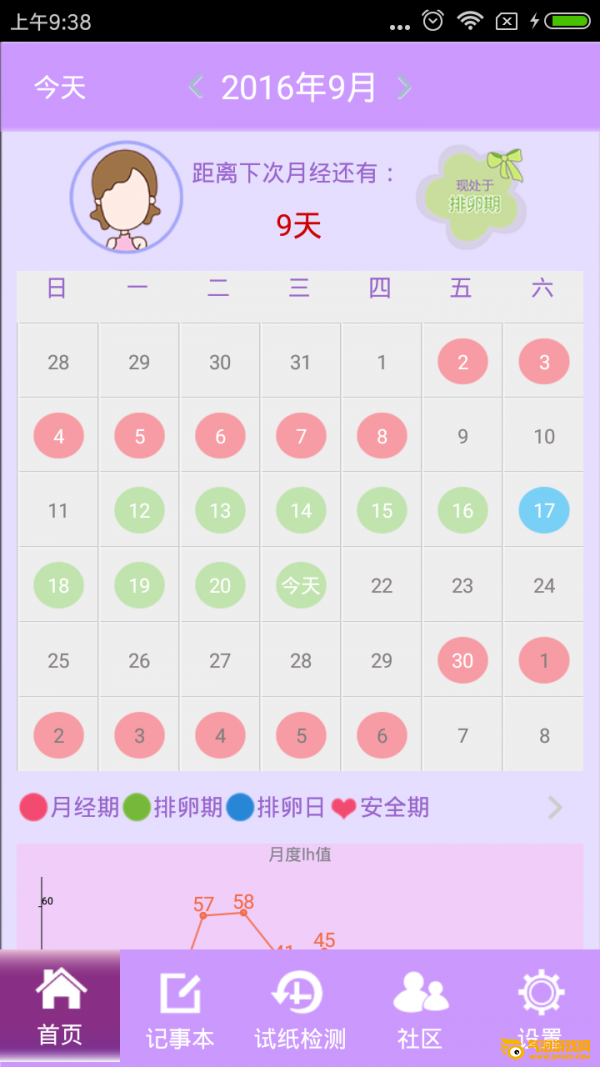 2.在日历上标注女性的生理周期,直观明了。