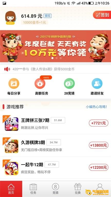 海量任务,每天挣钱:每天发100金币,很多简单的赚钱任务让你不停的挣钱!