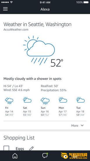 可以通过亚马逊Alexa app看新闻,追踪套餐,查看天气,查看游戏结果。Alexa有更多的第三方应用能力,可以做更多的外部应用。