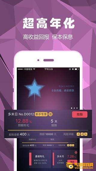 多米金融app是一个互联网金融平台,多米金融app已经从天使轮和Pre-A轮获得了数千万的注资,比如知名投资机构阿米巴基金(Amoeba Fund)。多米理财app有礼貌注册,有投资红包,有专业全面的理财交易APP,好玩又容易获得利益!