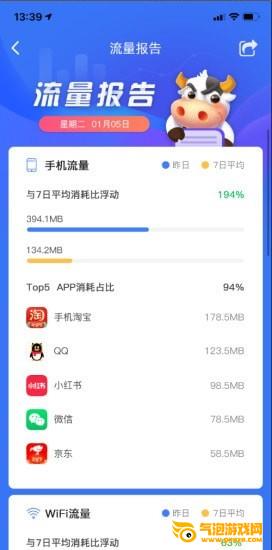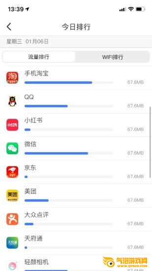 4、应用流量追踪监测手机应用程序流量消耗情况帮助你关闭耗量大的程序节省流量;