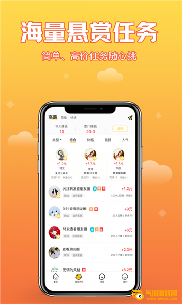 【任务赚】:试玩游戏、注册应用按照要求完成任务即可获得奖励。任务简单,奖励超高。
