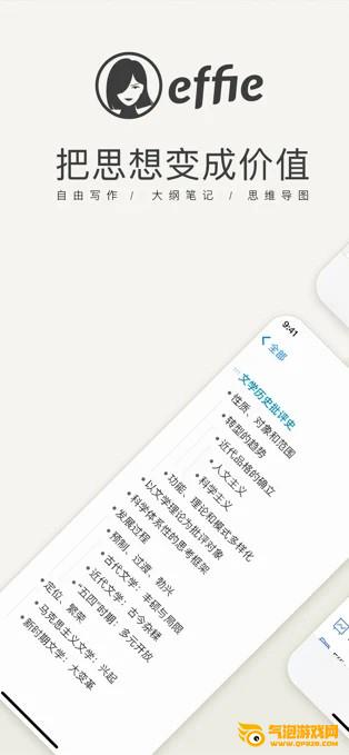 Effie写作软件是一款思想家专用的写作软件,无论是严肃写作,随手记录,亦或是把逻辑完善成思维导图,Effie软件都是您明智的选择。欢迎使用Effie app,把思想变成价值。