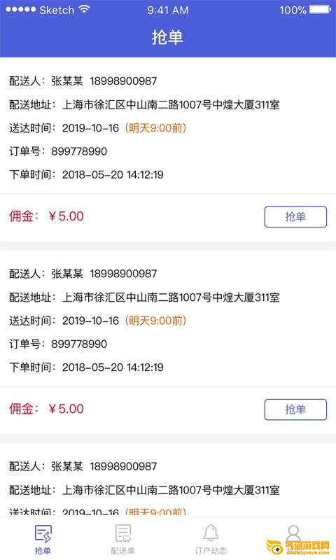 点击"抢单"按钮在线接单,最先点击的用户获得该订单;