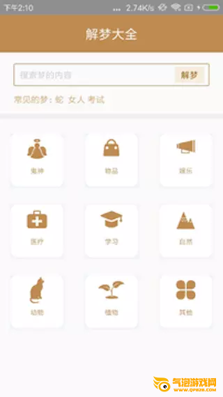 1、为用户提供的解梦类目有很多,可根据自己的需求,自由选择查看;
