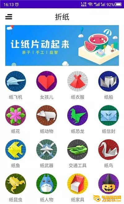 折纸手工大全app是一款亲子手工益智软件,折纸手工大全app里汇集了多种折纸方法,包含了飞机、衣服、船、花、动物、信封和鸟等类型的手工折纸样式,让你的纸片动起来,折纸手工大全app实时更新素材内容,适合亲子一起动手学习。