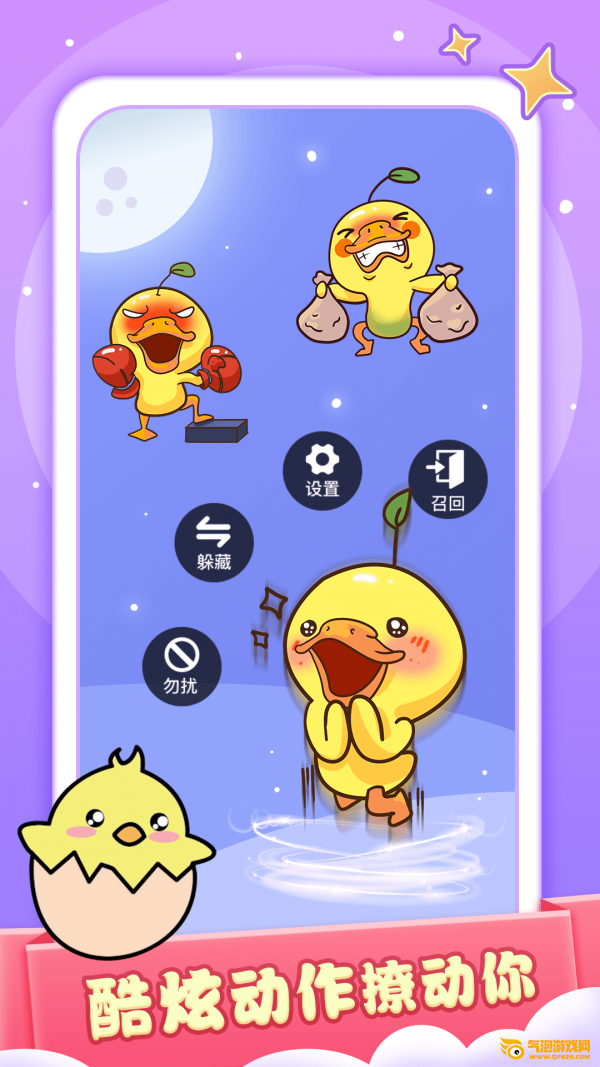 2、宠物可以在手机桌面上玩耍、行走、站立、睡觉、超多呆萌表情萌化你的内心。