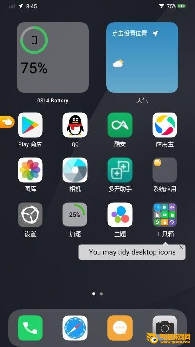 可根据喜好安排图标的排列,向左或者居中