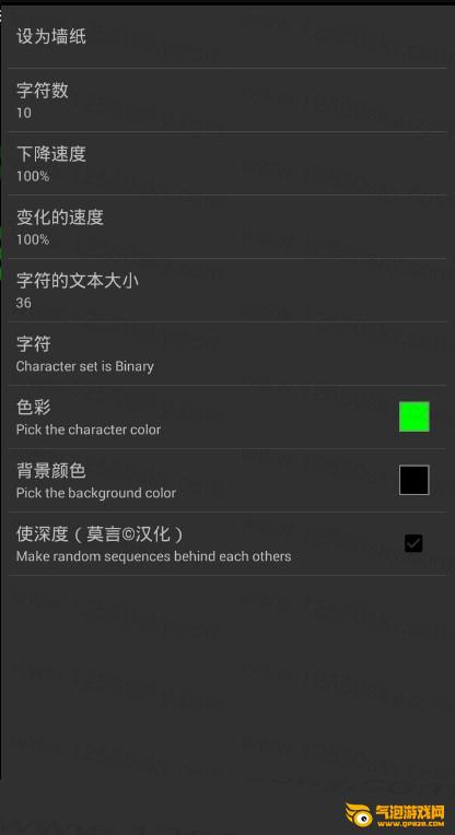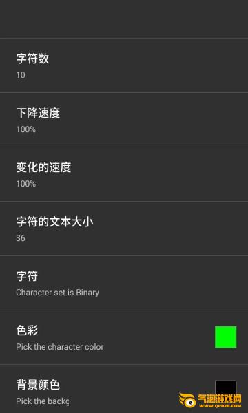 矩阵码雨动态壁纸软件内你可以更改字符数量,掉落速度,变化速度,修改背景颜色,文字颜色等;