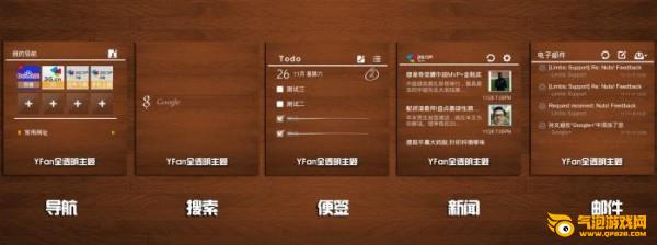 GO桌面部件之YFan全透明主题,温暖木质风格透明主题,给你的冬天带来厚重沉稳的感觉,全部采用图片的形式,加载时间可能会
