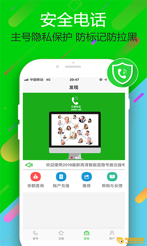 一键安装注册云拨电话app,号码可显示可隐藏,通话防标记拉黑,防骚扰,反录音。