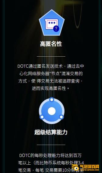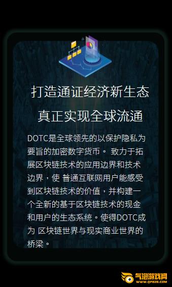 DOTC是全球领先的以保护隐私为要旨的加密货币。 致力于拓展区块链技术的应用边界和技术边界,使 普通互联网用户能感受到区块链技术的价值,并构建一个全新的基于区块链技术的现金和用户的生态系统。使得DOTC成为 区块链世界与现实商业世界的桥梁。