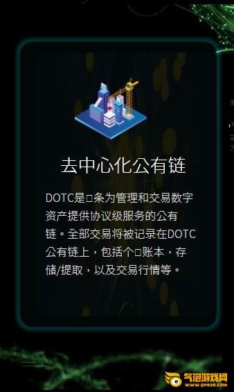 DOTC是?条为管理和交易数字资产提供协议级服务的公有链。全部交易将被记录在DOTC公有链上,包括个?账本,存储/提取,以及交易行情等。