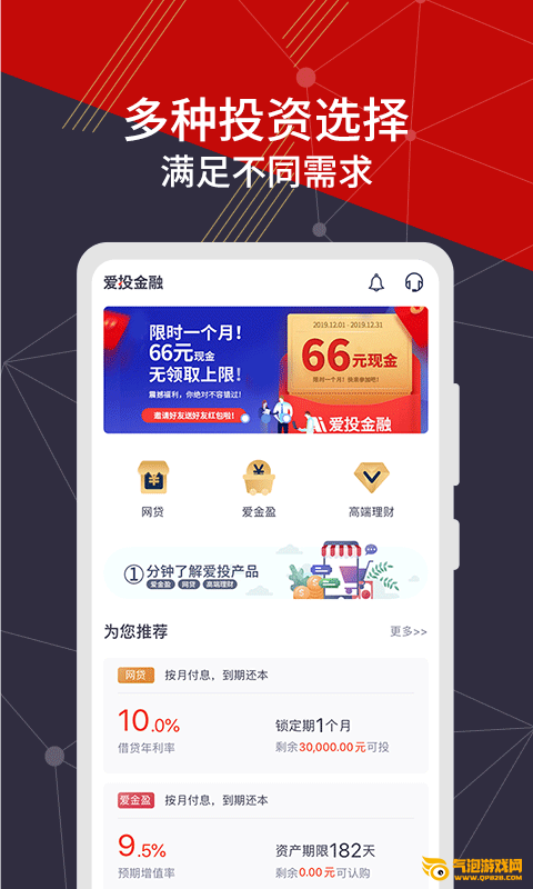 爱投金融app是一款金融服务软件,爱投金融app为用户提供了丰富的投资理财信息,打造低门槛高回报的投资平台,对于投资人士来说非常的不错,可以多多了解一下。