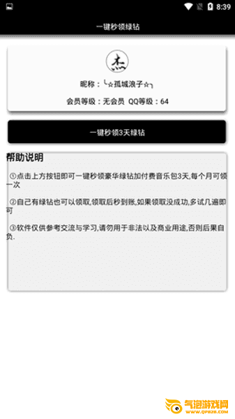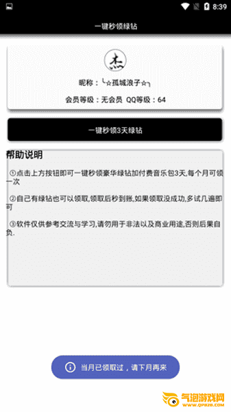3、点击上方按钮即可一键秒领豪华绿钻付费音乐包3天,每个月可领一次2、自己有绿钻也可以领取,领取后秒到账,如果领取没成功,多试几遍即可。