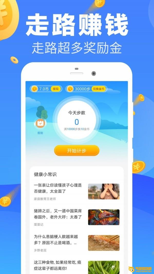 【走路赚钱】每日计步步数,走走赚钱,步步有奖,兑换金币,走步多多,挣钱多多。
