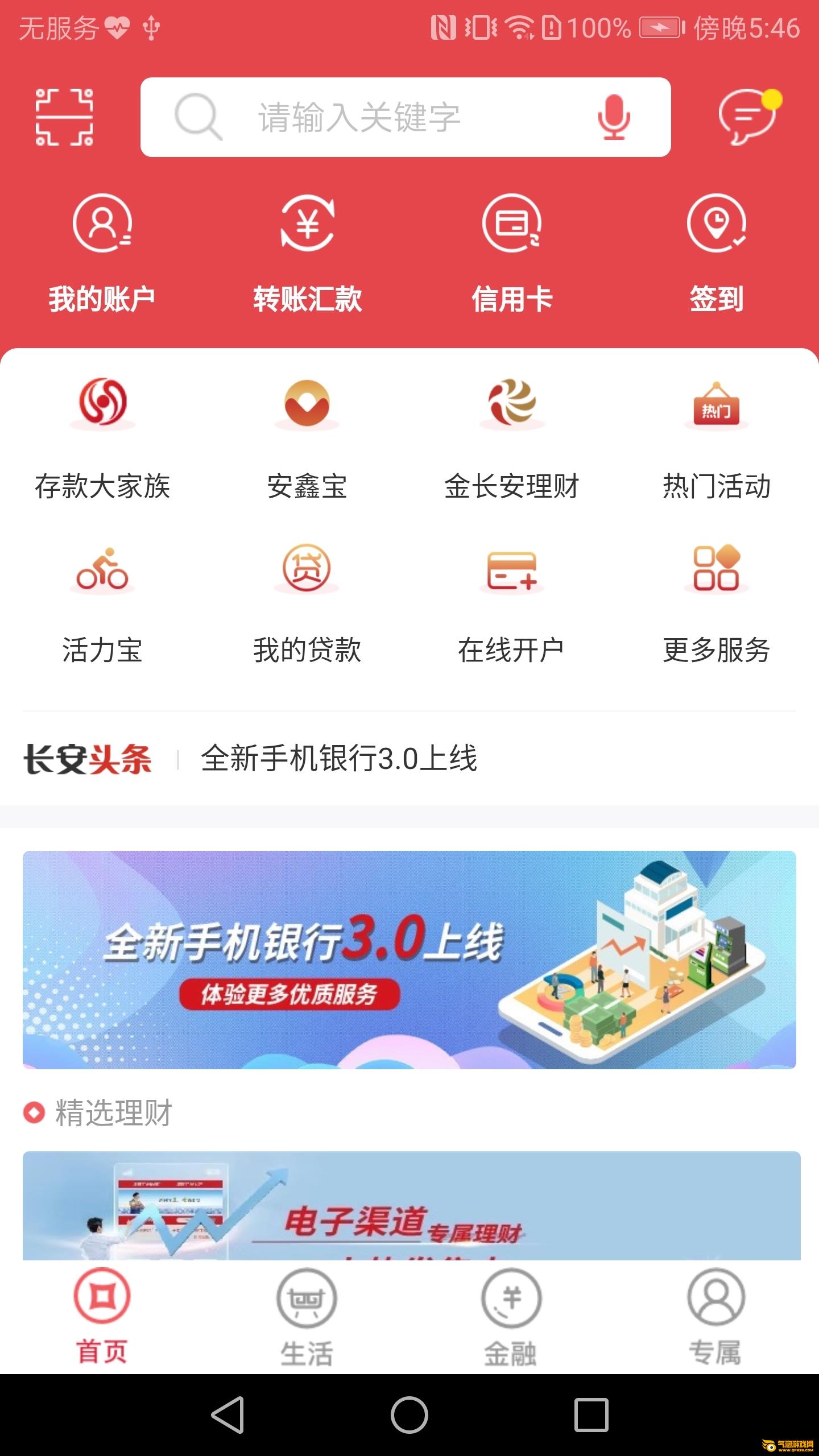 打开长安bank手机银行app,浏览到应用的服务和功能