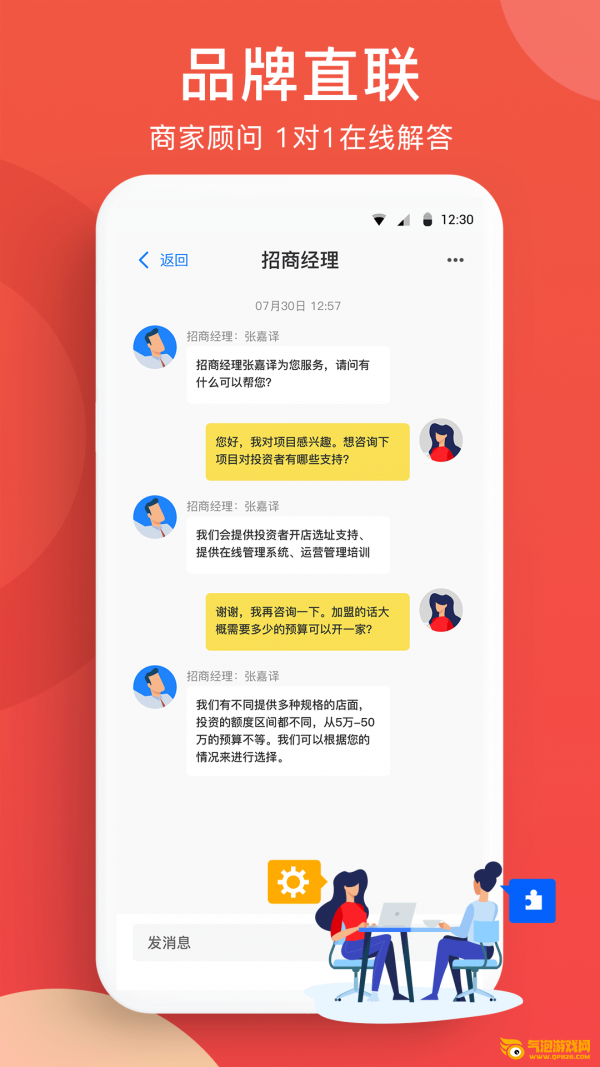 1对1在线咨询、在线留言、免费通话,行业经验丰富的创业分析师为创业者答疑解惑、帮您挑选创业项目、帮您对接企业、帮您定制开店计划。