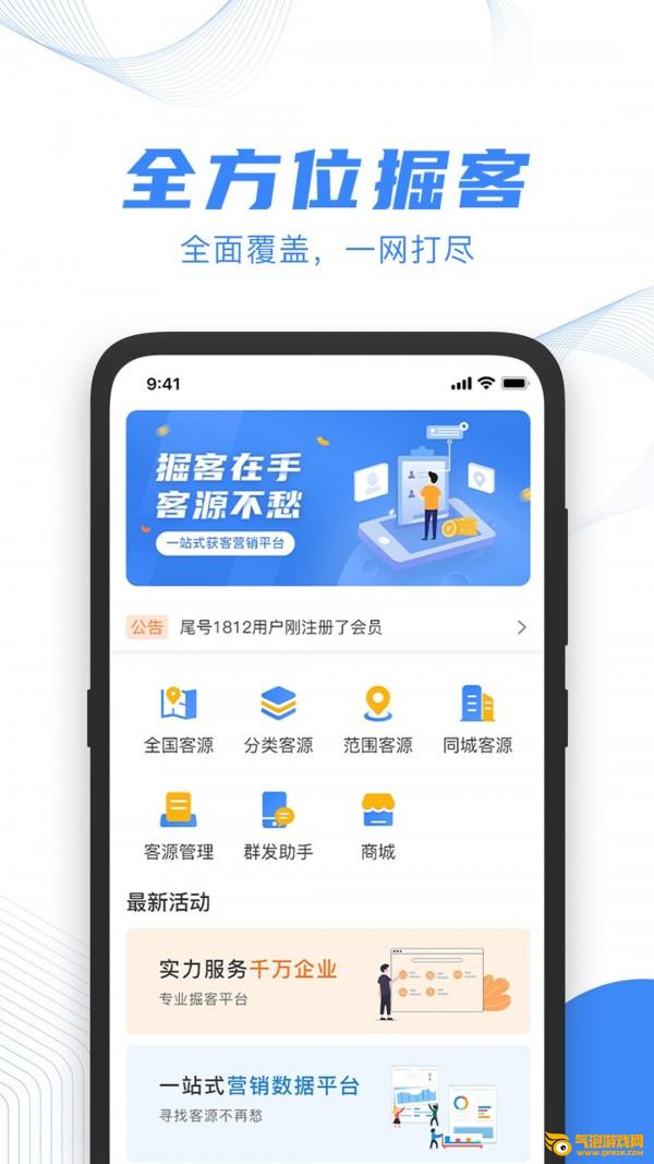 掘客app是一款非常高效率的销售拓客软件。掘客app集海量信息客源,基于高德、百度、腾讯三大地图基站,全覆盖精准采集,细化到县级,无死角获取商户资源,采集客源包括不同地区不同行业的垂直客户,如行业客户、地区客户、专属标签客户等。