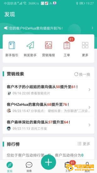5、点击发现,可以找到新手指引、转发助手和营销海报