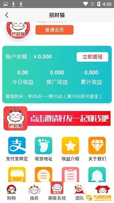 开通招财猫刷客系统成为平台合伙人就算您不推广也可以参与整个平台收益百分70的静态分红。