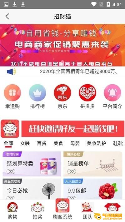 招财猫刷客系统是服务于各大电商平台卖家销量、优惠券促销、以及店铺排名点击量的刷客系统、开通刷客系统、系统后台自动搜索卖家需要推广的产品代码以及店铺浏览点击量等操作、完全解放双手坐享平台永久分红。全新的网赚项目等你来参与,在这里每天做任务即可赚收益,操作简单,任务每天实时更新,平台与各大电商合作,招财猫,让你轻松赚收益。