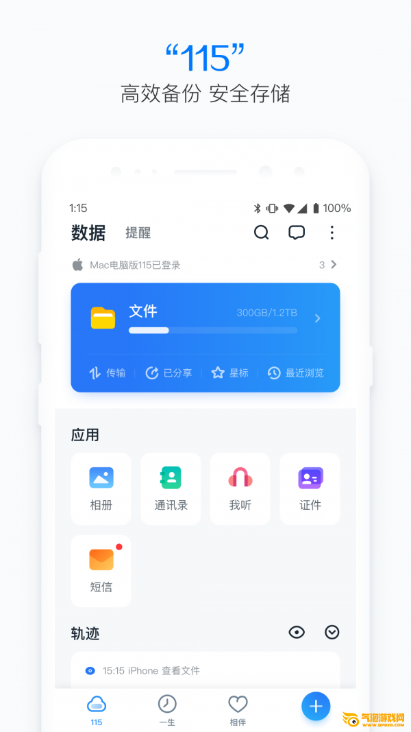 115个人app支持相册、通讯录一键备份,海量空间轻松存储一生数据。