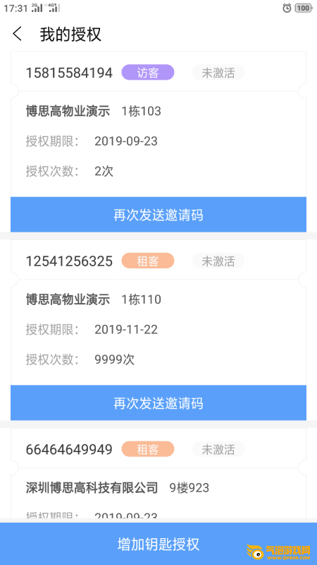 查看我的授权信息,全部楼栋钥匙授权信息这里清楚明了;