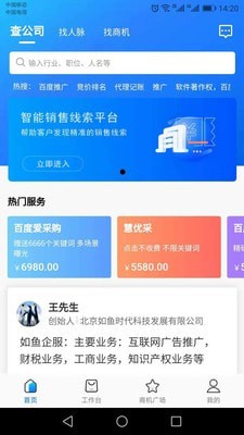 如鱼app主要创作目的是为广大的企业用户以及互联网广告、知识产权等从业者提供人脉寻找,商机发布,企业信息查询等功能,为企业和互联网从业者提供高效的业务工作。