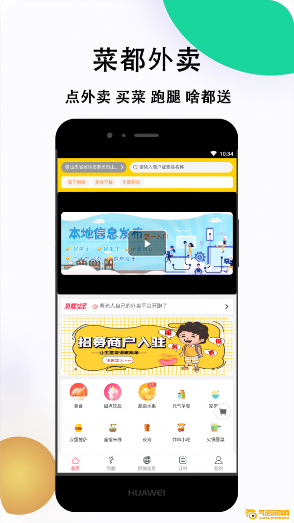 菜都外卖app是一款寿光市本地外卖服务平台,精选本地优质商家,为本地居民带来更便捷、更优惠的外卖跑腿服务,在家点外卖,轻松购买需要的商品。