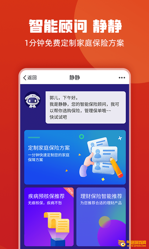 1、智能顾问静静,一分钟免费定制家庭保险方案;