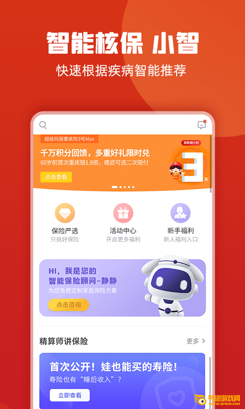 保险智能顾问app是一款提供小雨伞保险1V1问诊服务的咨询平台,能够根据用户的情况量身定制保险购买方案,还能够根据疾病进行快速智能推荐,由银保监会网销许可,新人还有专享福利,注册免费领取30000元保障。