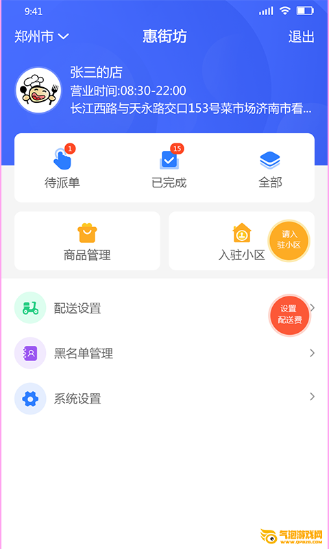3、有丰富的设置功能列表,其中涵盖配送设置、黑名单管理以及系统设置功能;