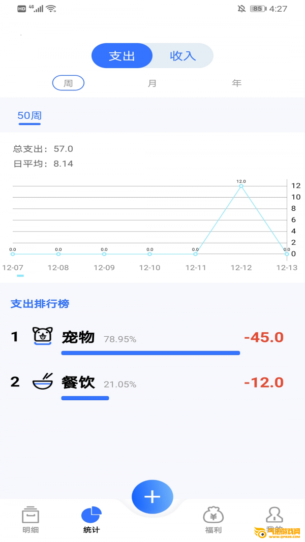 5.图表统计:查看收支趋势图和收支清单,消费数据一目了然
