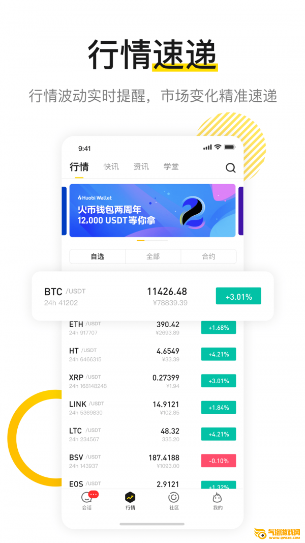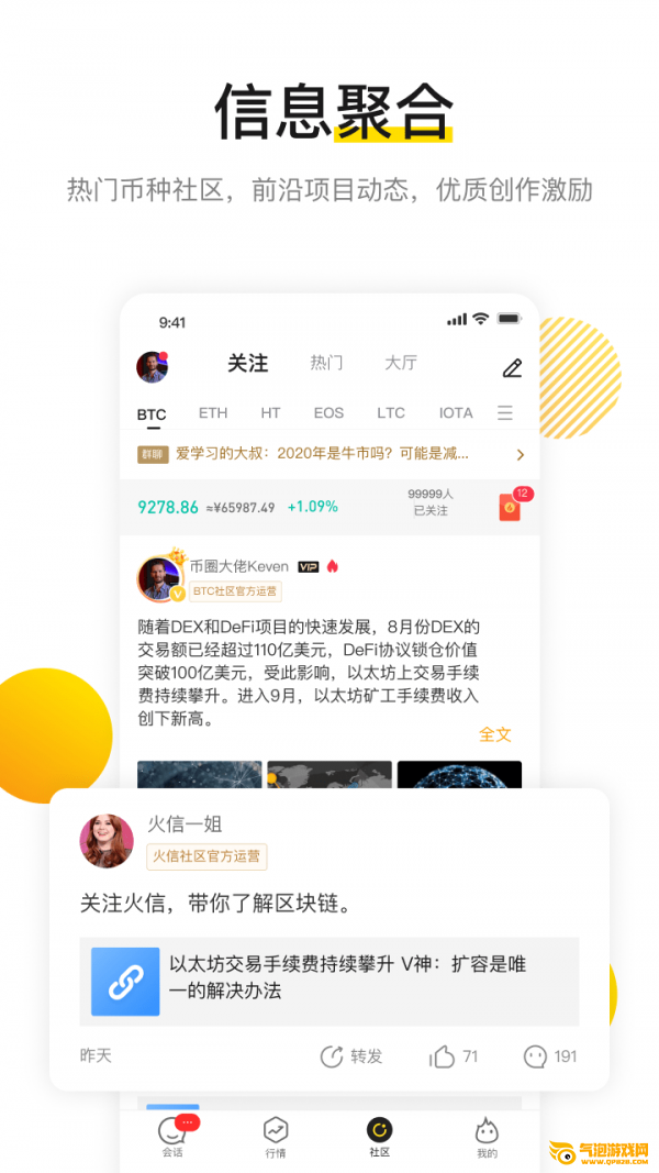 3.实时行情,权威数据,即时全面,在线交流,全面掌控区块链市场动态;