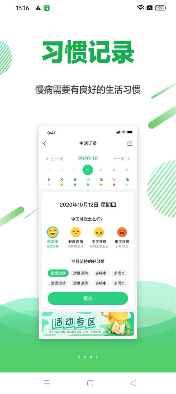 痛风快速愈合app是专为痛风患者和尿酸使用者设计的健康管理软件。痛风速愈App可以记录用户的日常饮食和尿酸变化。痛风快速愈合可以提醒患者持续控制尿酸水平,减少痛风发作次数。