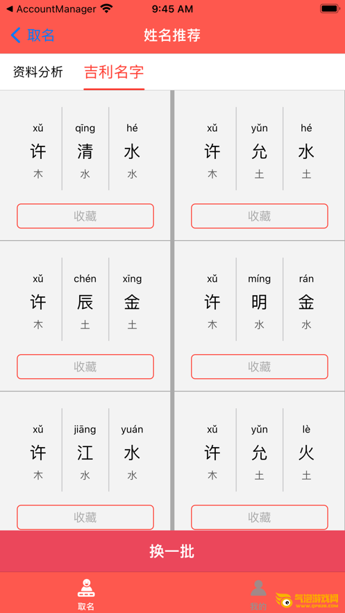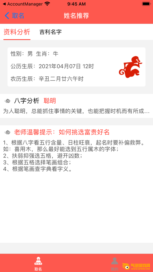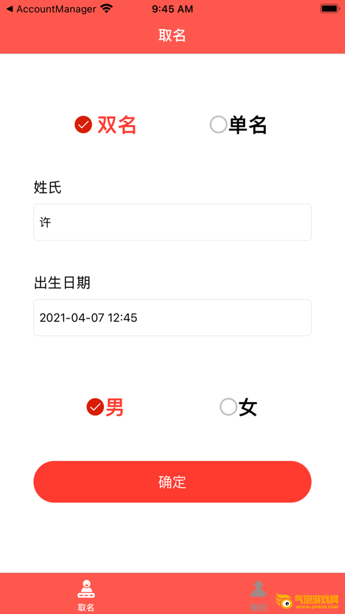 3.海星名是一个专业的名字APP。用户只需要输入姓氏和生日就可以得到推荐的名字