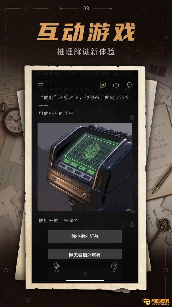 与传统的益智游戏不同,我们的游戏通常包括两种模式:纯在线游戏和现场互动游戏。要参与现实生活中的互动游戏,您需要获得一个物理道具包。游戏中的很多谜题都要求你创造性地使用包装中的各种道具和线索:外包装、封面、页面上看似漫不经心的涂鸦、页码、各种卡片和道具等等。