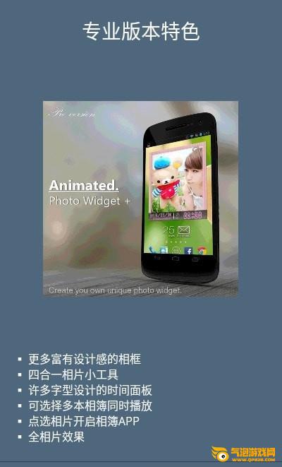 动画照片widget桌面动画照片Widget是你在安卓上值得拥有的照片Widget。最华丽最强大的照片幻灯片小部件。你一直在等的那个。它可以帮助您创建自己独特的照片小工具。它不同于其他照片部件,在幻灯片放映期间提供多达30个相框和7种过渡模式。它的照片选择器可以增强桌面的多样性,使您选择相册更加方便。