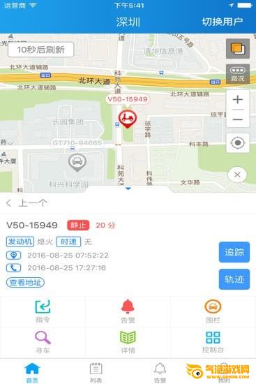 查看车辆列表、实时跟踪单车、监控多辆车、回放历史轨迹、查询倒车地址、通过不同图标显示不同车辆状态等。